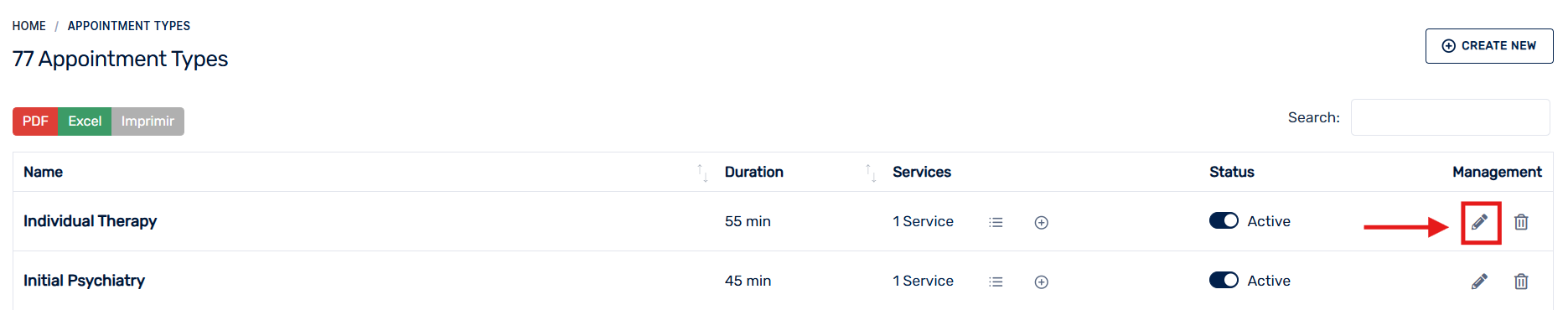 To limit an appointment, go to the Appointments panel > Appointment Types. Then, select the appointment type or service you want to limit and click on the pencil icon to edit it.