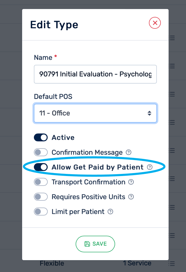 Cada tipo de cita incluye la opción “Allow Get Paid by Patient”, la cual permite habilitar el cobro directo al paciente por los servicios prestados, ya sea en efectivo, con tarjeta o mediante link de pago.